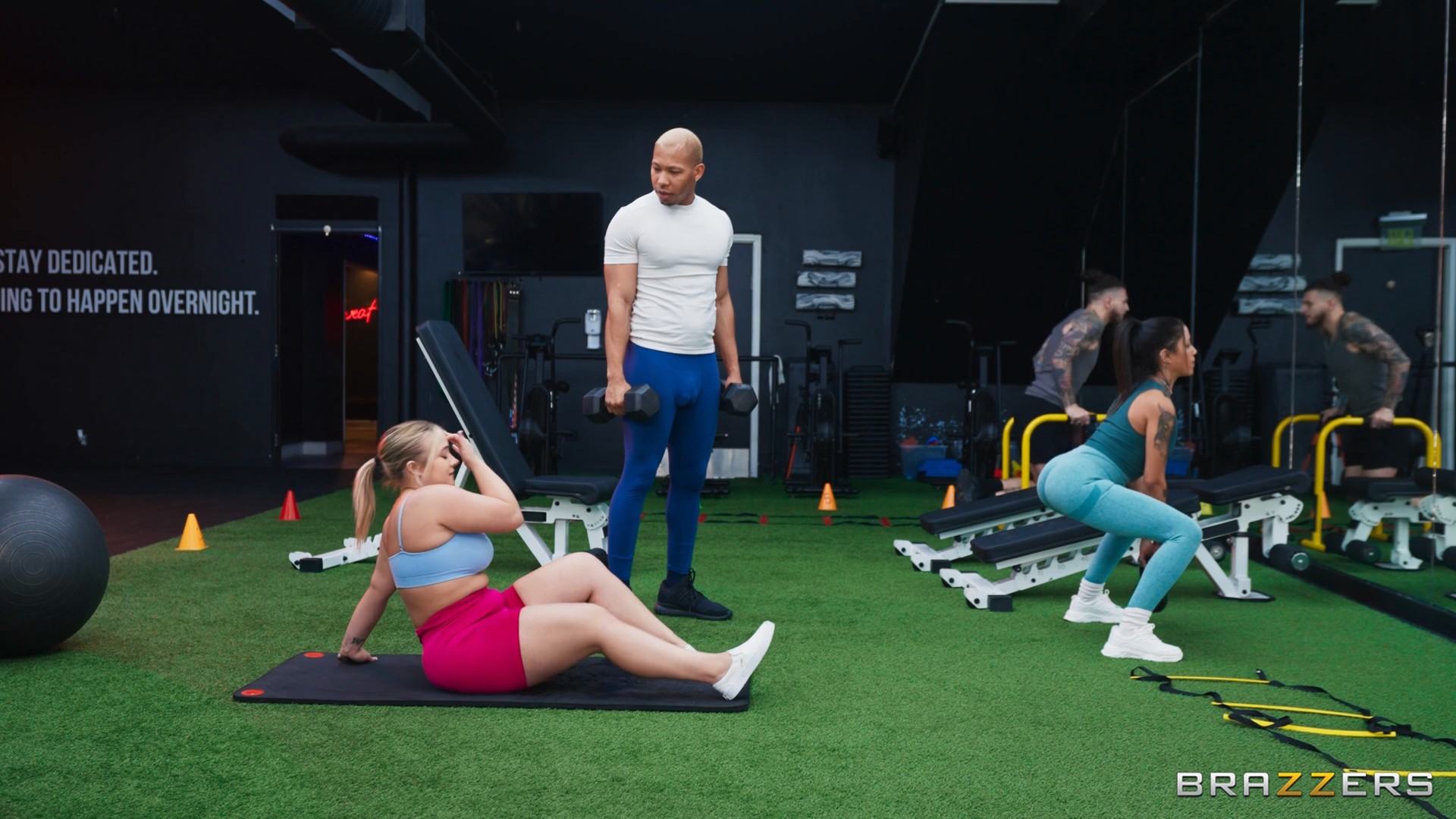 Lila Hayes has a condition known as Accidental Orgasms – she never knows when or where one might happen. Today she’s in a public gym and can’t stop coming during her workout. She tries her best to keep quiet and not have anyone notice her, but Ricky Johnson can’t help but stare. Lucky for him Lila likes him too and invites him over so they can have an intentional orgasm together, sneaky style!